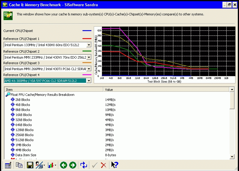 | SiSoft Sandra 2001 Whetstone (Windows) | 22 MFLOPS | 21 MFLOPS | not possible (Win 95) |